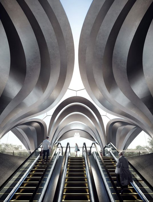 Design nowych stacji stoi w mocnym kontraście do typowego postradzieckiego stylu obiektów tego typu. Jak pokazują wizualizacje powstałe w pracowni Zaha Hadid Architects, zarówno wejścia, jak i wnętrza stacji są dynamiczne i przestrzenne, a to za sprawą opływowych, organicznych kształtów, tak charakterystycznych dla znakomitej większości realizacji, które ma na koncie brytyjska pracownia.