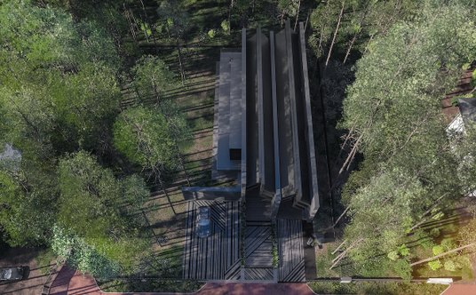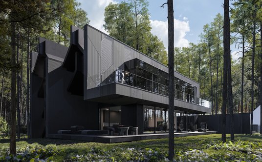 Na elewacji z aluminium umieszczono nieco zreinterpretowany motyw jodły francuskiej, a oryginalne, strzeliste formy architektonicznych nawiązują do kształtu tego drzewa. Dzięki temu willa w ciekawy sposób koresponduje i spaja się z leśnym krajobrazem.