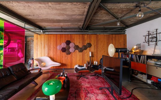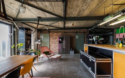 – Klatkę schodową przywlokłem za złotówkę z budowy w Gliwicach, balkon wcześniej był rusztowaniem, beton na suficie i na posadzce, kuchnia z MDF i ogród z kuchnią w kontenerze z donicami i szachownicą z demobilu Parku Śląskiego – tak Przemo Łukasik opisuje, jak powstawał Bolko Loft.