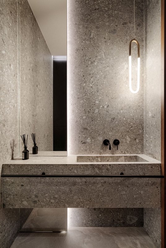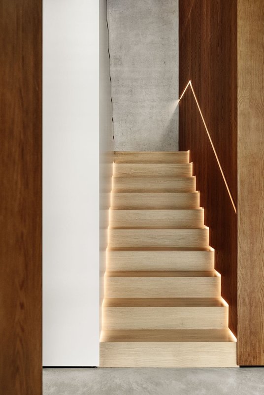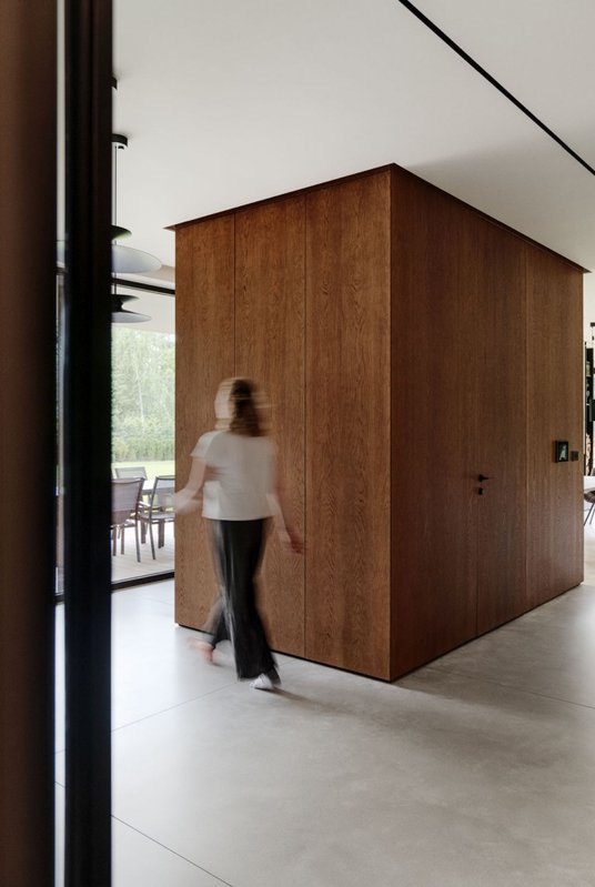 Klimat wnętrz willi natychmiast wywołuje poczucie relaksu i łączności z naturą, pomimo konsekwentnego minimalizmu, jakim charakteryzuje się ta posiadłość. We wnętrzach dominuje stonowana, kojąca kolorystyka z ciepłymi beżami, złamanymi bielami i odcieniami szarości.