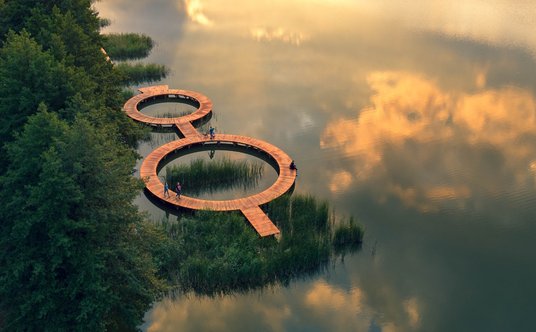 Kompleks na brzegu Jeziora Słupeckiego projektu Grobelnego składa się z pomostów w kształcie koła, platform oraz molo, które prowadzi na znajdujący się na Jeziorze Słupeckim starożytny kopiec pochodzący z czasów kultury łużyckiej. Architekt umieścił wewnątrz kopca platformę widokową – najważniejszy element całego założenia.