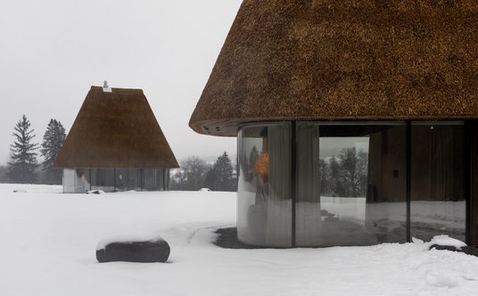 Na górze tradycyjna strzecha, na dole – nowoczesne przeszklenia. Tak wyglądają domki wypoczynkowe projektu architektów z kijowskiej pracowni architektonicznej YOD Group. Realizacja nawiązuje do tradycyjnej ukraińskiej architektury wiejskiej i jednocześnie wykorzystuje nowoczesne, proekologiczne technologie.