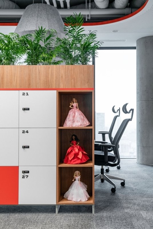 Na 34. piętrze warszawskiego wieżowca Skyliner, jednego z najnowszych stołecznych biurowców, mieści się polska siedziba firmy Mattel. 650 metrów kwadratowych zostało zaaranżowane tak, by pracowników oraz gości firmy przenieść do świata popularnych zabawek. Ta realizacja to projekt pracowni Bit Creative.