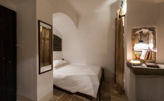 Pokoje w hotelu-pustelni przypominają cele mnichów. Są niewielkie i ascetyczne, zapewniają jednak niezbędne minimum: prywatną łazienkę z prysznicem i wygodne łóżka, które wyposażono w ręcznie szytą pościel z włókna konopnego.