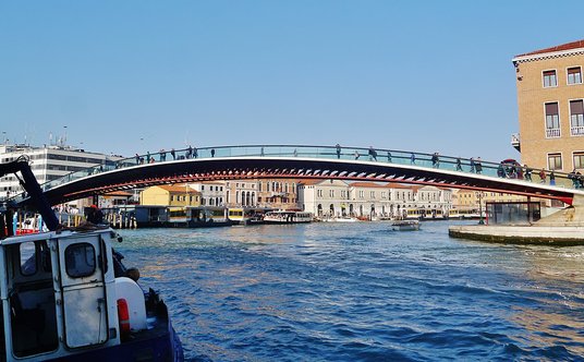 Lekki i minimalistyczny obiekt projektu biura architektonicznego Santiago Calatravy miał stanowić wyraz aspiracji Wenecji do bycia nowoczesnym miastem, śmiało patrzącym w przyszłość. Jednak od początku istnienia przeprawy pojawił się problem: szklana powierzchnia mostu okazała się niebezpiecznie śliska. Sprawie przyjrzał się niedawno „New York Times”.