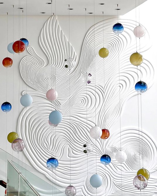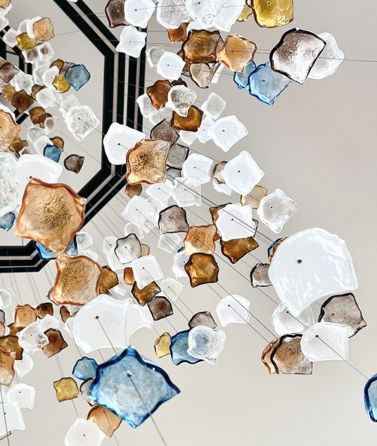 Edyta Barańska: To ciekawa historia. Wszystko zaczęło się od Hiltona w Gdańsku. Dostałam zapytanie o dostawę mydelniczek artystycznych do wszystkich pokoi. Zrobiłam prototypy i właściciel hotelu, Filip Wójcikiewicz, postanowił się ze mną spotkać. To on opowiedział mi o projekcie pracowni Kuryłowicz i o instalacji długiej na 12 metrów, która miałaby się pojawić w hotelowym patio. Później było wiele spotkań, podczas których rzucaliśmy chusteczki i patrzyliśmy, jaki kształt mogłoby przybrać szkło do lampy. Finalnym krokiem była akceptacja mojego projektu przez projektantki z Londynu. Gdy przeszłam wszystkie etapy, stanęłam przed największym wyzwaniem w moim życiu. Dzięki projektowi dla gdańskiego Hiltona zyskałam rekomendację do dalszych kontraktów.