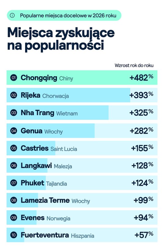 Na podstawie analizy danych dotyczących tysięcy podróżników eksperci z platformy Skyscanner określili, gdzie i jak będziemy podróżować w 2026 roku. Raport przynosi też przegląd kluczowych trendów podróżniczych, a także zestawienie najpopularniejszych kierunków podróży.