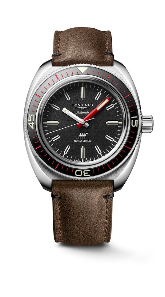 Longines Ultra-Chron, nawiązujący do modelu nurkowego z 1968 roku, jest zegarkiem sporych rozmiarów. Jego nieco beczułkowata koperta ma 43 milimetry średnicy. To sporo, ale w świecie zegarków nurkowych, a takim jest Ultra-Chron, taki rozmiar nikogo nie zaskakuje. To, co najważniejsze w przypadku tego zegarka, kryje się wewnątrz koperty – w środku znajduje się kaliber L.836.6. Pracuje on z częstotliwością 5 Hz i wyposażony jest w krzemową sprężynę balansową o podwyższonej odporności na działanie pola magnetycznego.