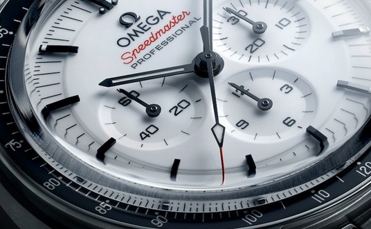 Białe tarcze to nieczęsty widok w tym segmencie. Szczególnie rzadki – w przypadku klasycznych wersji modelu Omega Speedmaster, który narodził się w latach 50. jako zegarek sportowy, a sławę zyskał jako chronograf, który pomógł Amerykanom w podboju Księżyca i uratował uczestników feralnej misji Apollo 13.
