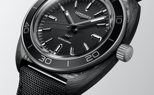 Po włókno węglowe sięgnął też Longines w przypadku swojej pierwszej tegorocznej premiery: modelu Ultra-Chron w wersji Carbon. To odwołanie do zegarka, który pojawił się w ofercie tej szwajcarskiej marki ponad dwa lata temu – w 2022 roku zaprezentowano modelu Longines Ultra-Chron. Firma z Saint-Imier odkurzyła w ten sposób pamięć o słynnym modelu nurkowym Longines z 1968 roku.