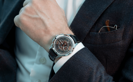 Koperta, wyposażona w wyrafinowane przyciski, zamyka wypukłe szkło szafirowe z powłoką antyrefleksyjną, inspirowane stylem vintage i odporne na zarysowania. Zakładana tarcza z mocno zarysowanymi, wygiętymi wskazówkami zapewnia wysoką czytelność w każdych warunkach. Całość dopełnia skórzany pasek z zapięciem motylkowym.